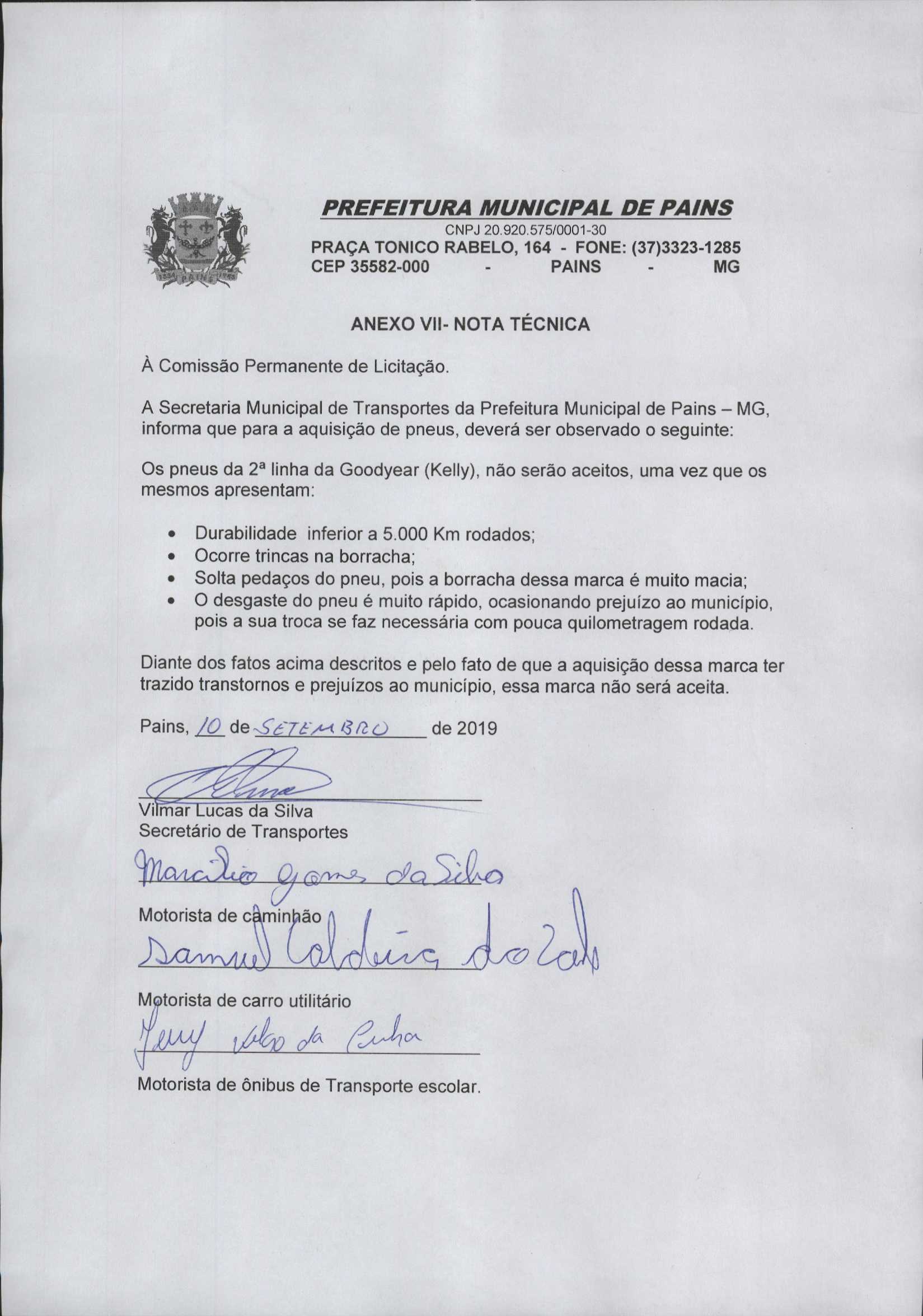 PROCESSO LICITATÓRIO N.º 164/2019 PREGÃO PRESENCIAL N.º 54/2019O PRESENTE PROCESSO LICITATÓRIO TEM POR OBJETO A AQUISIÇÃO FUTURA DE CÂMARAS DE AR, PROTETORES E PNEUS NOVOS PARA USO NOS VEÍCULOS AUTOMOTORES E MÁQUINAS PESADAS PARA USO DA FROTA DO MU